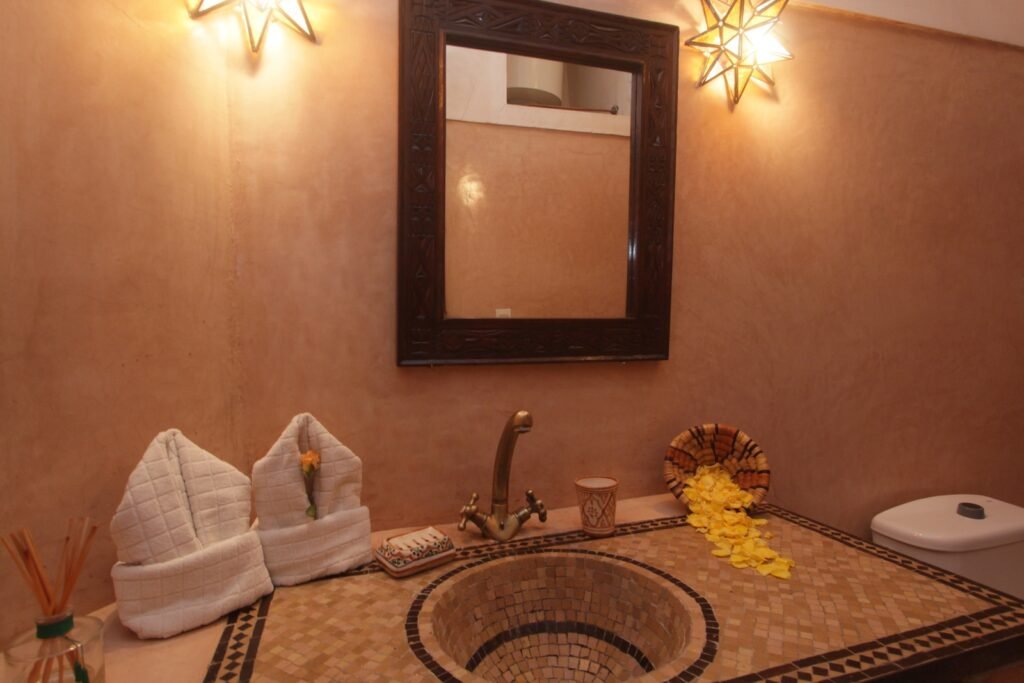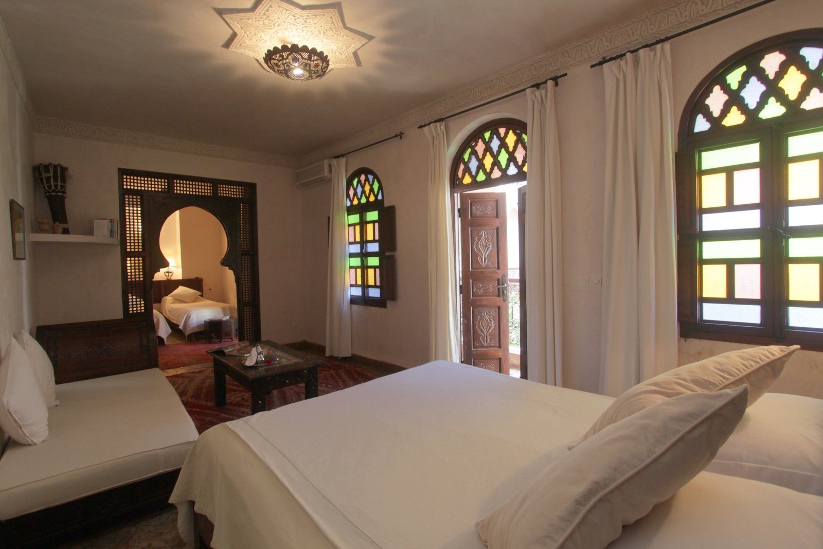 Its private bathroom features a bathtub finished in traditional tadelakt, inviting you to unwind after a day exploring the Medina. Spacious yet intimate, Sable Suite captures the welcoming spirit of Riad Massiba — a true family home where every guest, young and old, feels right at home.